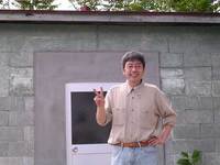 ・・・「ぼのねっと」をご覧の皆様のために記念写真をパチリ!これがなんの写真かおわかりになります?はい、そうです。「ものみな過去にありて」第一章「ワタシはそこに登って歌をうたった」の「そこ」です。営林署の倉庫です。久しぶりに訪れた思い出の場所に立ついがらし先生でございます。