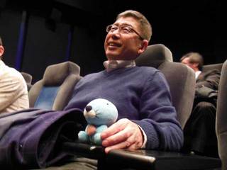 そして1月、遂に映画が完成!いがらし大使とぼのちゃんは、大泉の東映デジタルセンターへ!なんちゅう立派な試写室でございましょう!映画の開始をワクワクドキドキで待ついがらし大使とぼのちゃんなのでした。いやぁ映画って本当にすごいですねぇ!