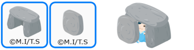 「しまっちゃう岩の家」と「しまっちゃう岩の戸」の二つを組み合わせて「ぼのぼの」の原作を再現しよう!この岩の中にはアバターを一人しまうことが出来ます。「しまっちゃうおじさん」になりきって、友達をしまっちゃおう!