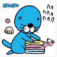ぼのぼのが洗濯物をたたむお手伝いをしてくれるよ。