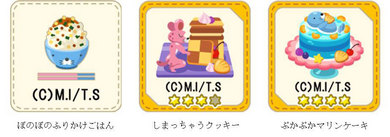 マイキッチンにレシピを並べると、「ぼのぼの」や「シマリスくん」など森のみんなが遊びにきてくれるよ♪