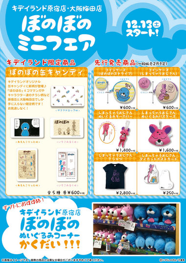なんとなんと!キデイランド原宿店さんと大阪梅田店さんでクリスマス特別企画「ぼのぼのミニフェア」が開催されますぞ~っ!