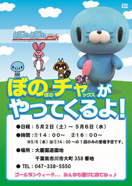 ぼのチャッX着ぐるみが大慶園遊園地に登場!