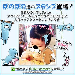 ぼのぼの達のスタンプがでたよ!仲良しのシマリスくん、アライグマくんやしまっちゃうおじさんなど人気キャラクターがいっぱいです!さぁ、どんどん写真加工しちゃおうねー!